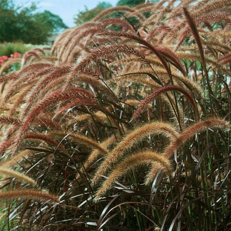 This variety produces waves of gracefully nodding soft purple plumes that arch up and out from burgundy-tinted foliage in true fountain grass form. It is especially dramatic in containers and mass plantings.