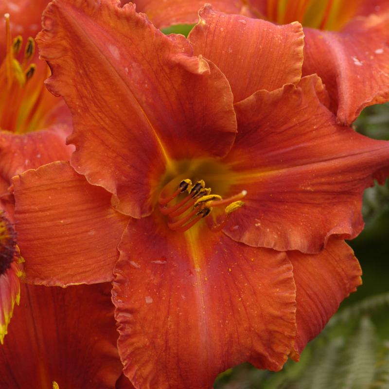 'Alabama Jubilee' produces huge, fragrant, 7" bright red-orange blossoms with deep red bands and gold throats that hold up extremely well in Maine summers. It will bloom in July and August on strong, well branched scapes.