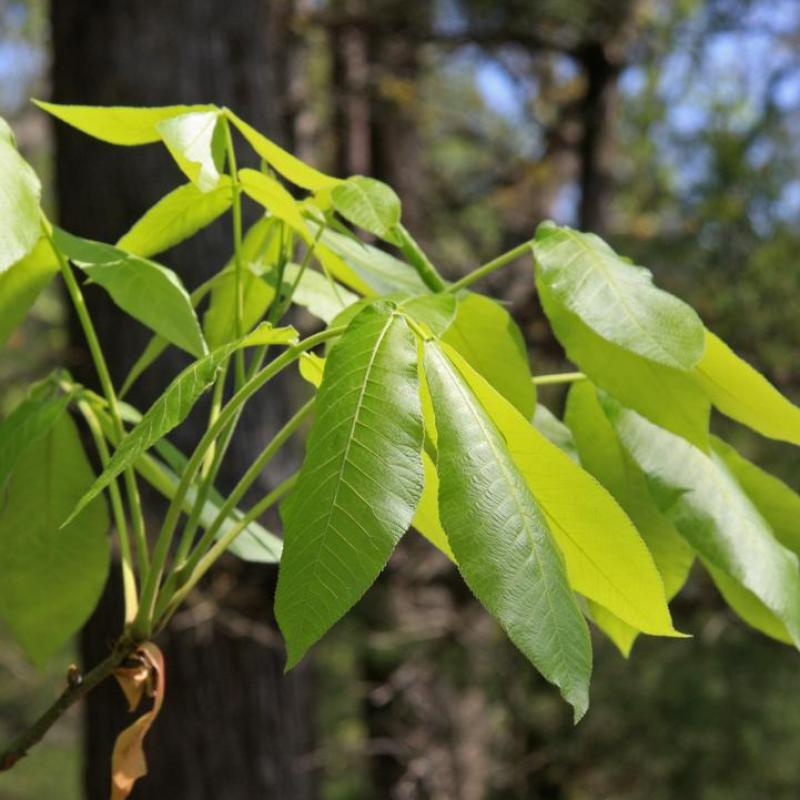 This low maintenance shade tree will be a showy and edible addition to your own. The barks commonly peels and curls off it's straight trunk. Covered in yellow-green leaves, thick-shelled hickory nuts are nestled in-between. These nuts are perfect for eating and cooking.
