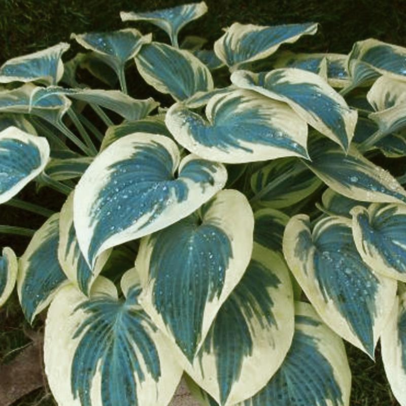 The thick, slug resistant, soft-blue leaves of this selection have wide cream margins and emerge in spring. As summer comes on, the margins brighten to white and the center deepens to blue-green before deep lavender flowers appear in July.