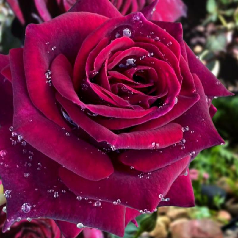 A stunning rose that dazzles with velvety, deep crimson-purple blooms and a rich, classic rose fragrance. This compact, bushy variety is highly disease resistant and blooms repeatedly from spring to frost, adding bold color and fragrance to any garden.