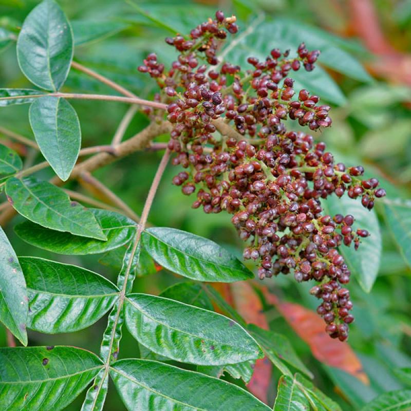 A native standout known for its glossy foliage and brilliant scarlet fall color, Shining Sumac provides year-round beauty and wildlife value. Upright clusters of red berries attract birds, while its ability to thrive in poor soils makes it an excellent choice for slopes or naturalized plantings.