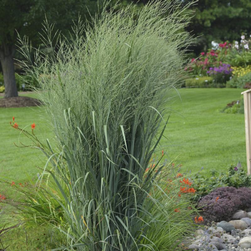 A striking native grass with a tall, narrow, upright habit and steely blue foliage. Airy tan flower panicles emerge in late summer and persist into winter. Great for vertical accents, screens, and low-maintenance plantings.