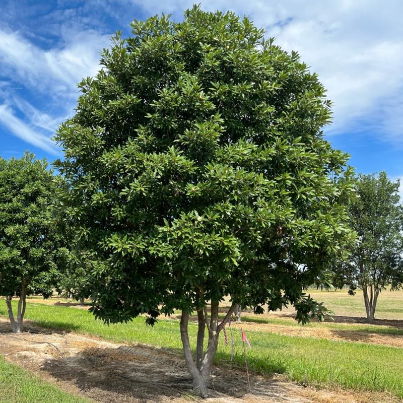 An elegant native magnolia with glossy, semi-evergreen foliage and creamy white, lemon-scented flowers that bloom from late spring through summer. 'Green Shadow' is valued for its deep green leaves, refined form, and excellent adaptability to moist or wet soils.