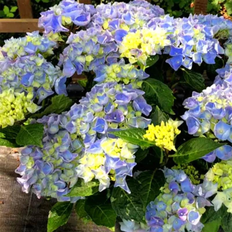 ‘HI River’ flows with waves of soft blue and creamy yellow blooms, evoking the gentle colors of water and light. Compact and long-blooming, it brightens shady borders and containers with its elegant flower clusters and lush green foliage.