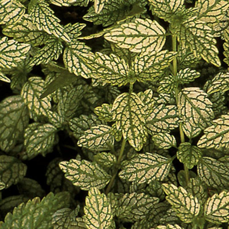 The leaves of 'Herman's Pride' have distinct silver variegation and form a neat, compact, mound-shaped habit that serves as a backdrop for yellow flowers.
