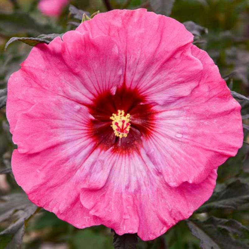 ‘Inner Glow’ is a stunning hardy hibiscus featuring enormous, soft pink blooms highlighted by a dramatic deep red eye that radiates outward from the center. Blooming from midsummer into early fall, it makes a bold statement in the landscape and thrives in sunny borders, mixed perennial beds, and near water features.
