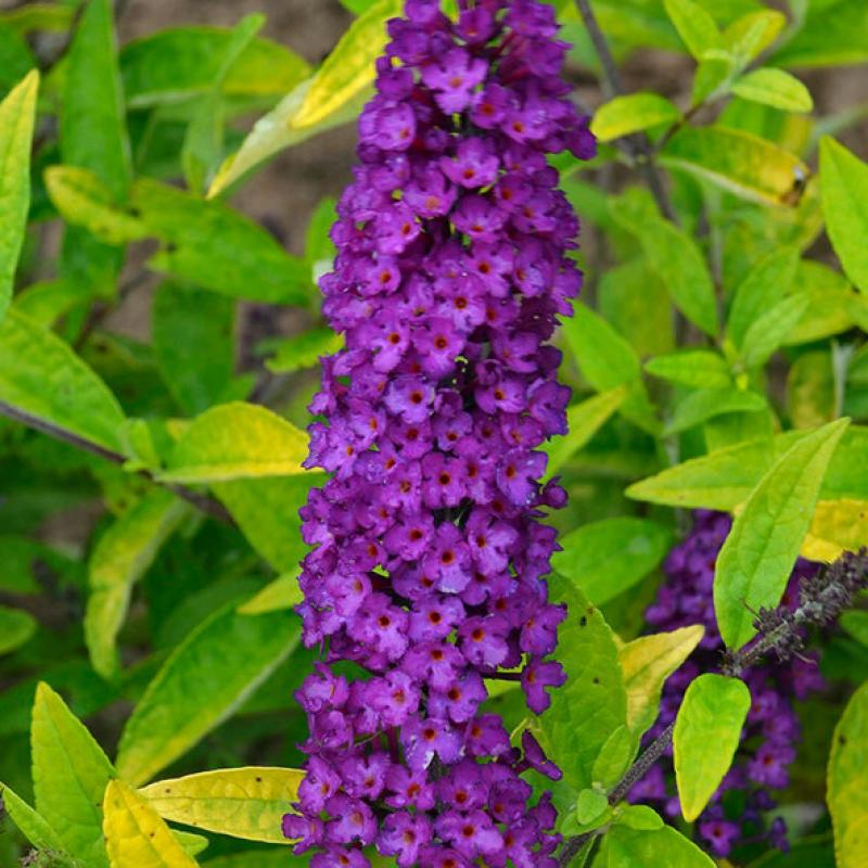 A showstopping butterfly bush featuring golden-yellow foliage that contrasts beautifully with rich purple flower spikes. ‘Little Nugget’ adds a bold pop of color to the garden all season long, offering compact growth, strong fragrance, and outstanding pollinator appeal.