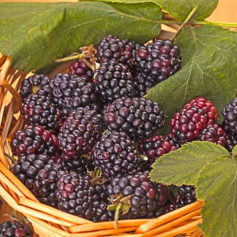 Robust, thornless canes bloom heavily in spring followed by berries that mature in late July as large, shiny black, tart, tasty fruit that is perfect for eating right off the plant or perfect for using in jams, or preserves. Easy to grow and very productive. Fruit is huge and tasty. Early summer maturity. Outstanding for fresh eating, jams or preserves.