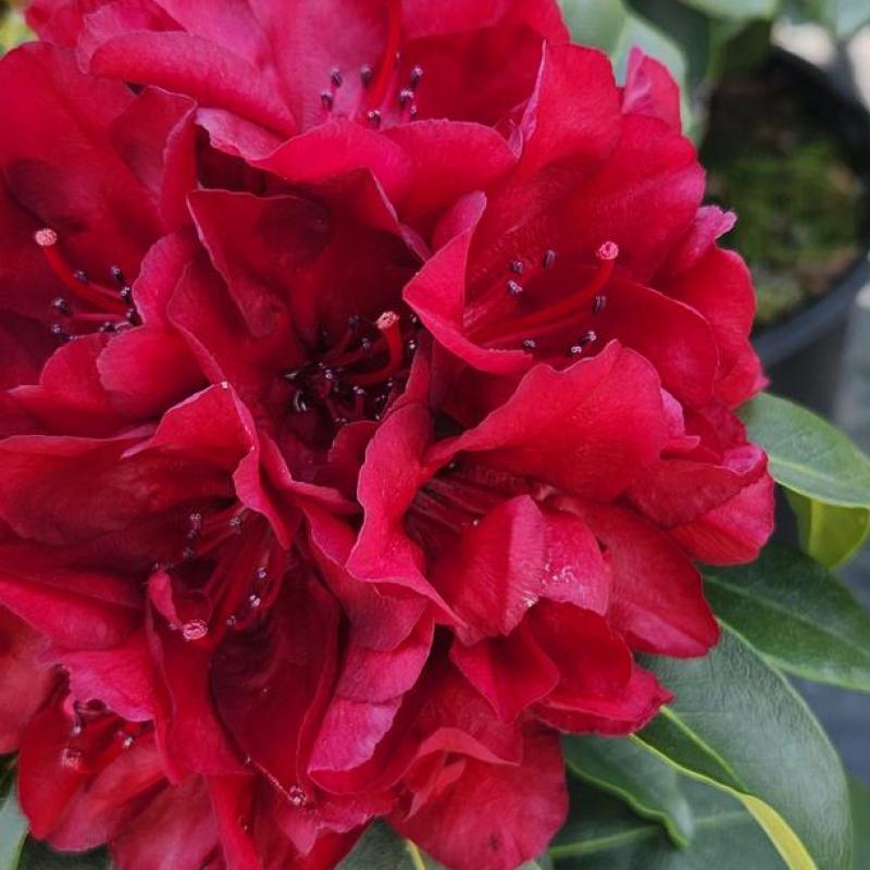 A cross between 'Vulcan' and 'Chocolate Soldier', 'Firestorm' is a small shrub with red, open, funnel-shaped flowers that have wavy edges. Each blossom is 3-3.5" wide that drastically stand out among the lime green leaves. Compact spreading form lends itself well to foundation use or in groupings to form a lower flowering hedge. Superb foliage, dependable late May bloom that's spectacularly showy.