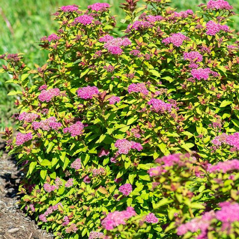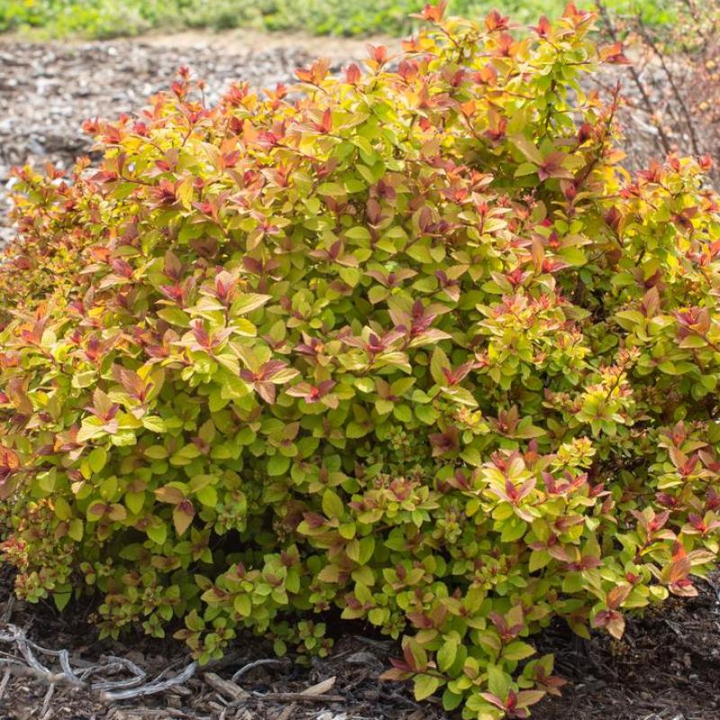 Pink flowers pop against the tri-colored foliage beginning in late spring. New growth emerges bright red before aging to yellow and then light green. Sporadically re-blooms throughout the season to be a low-maintenance option for your landscape! Compact form can be used on the foundation or in groupings for bank or border plantings. Hardy, dependable, showy long lasting bloom, nice fall color and texture. Deer resistant.