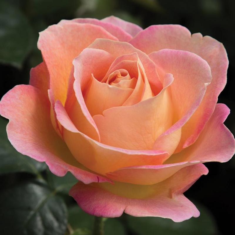 Large, fully double blooms in soft peach and pink tones emit a strong, citrusy fragrance. This award-winning hybrid tea rose offers excellent disease resistance and repeat flowering throughout the season.