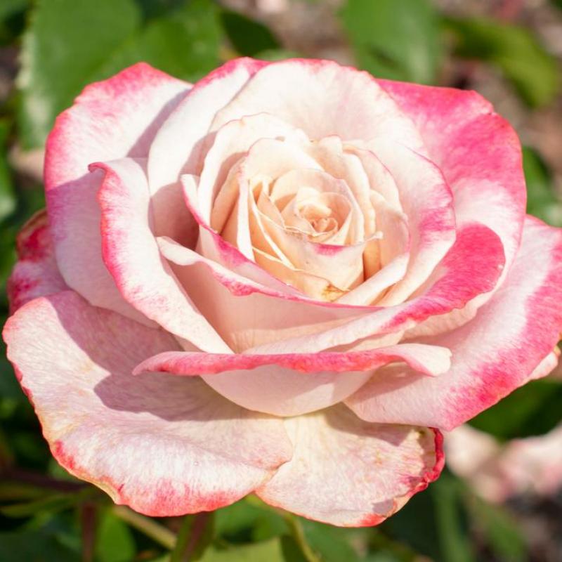A romantic rose with creamy petals edged in vibrant pink and a rich, spicy fragrance. 'Pinkerbelle' is a standout in the garden or vase, with strong disease resistance and repeat blooming throughout the season.