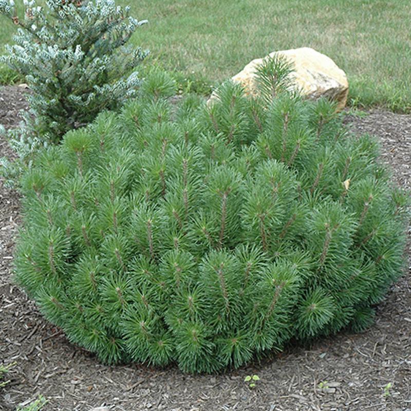 Light green, candle-like shoots present a striking appearance in early spring against the mature, dark evergreen foliage of this uniformly mounding selection. Small cones are an added winter feature.
