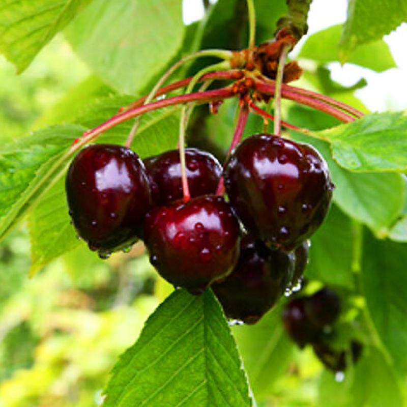 A dependable mid-season sweet cherry producing large, dark red fruit with rich, juicy flavor. Vigorous and cold-hardy with strong resistance to cracking. Excellent for fresh eating or desserts. Requires a compatible pollinator.