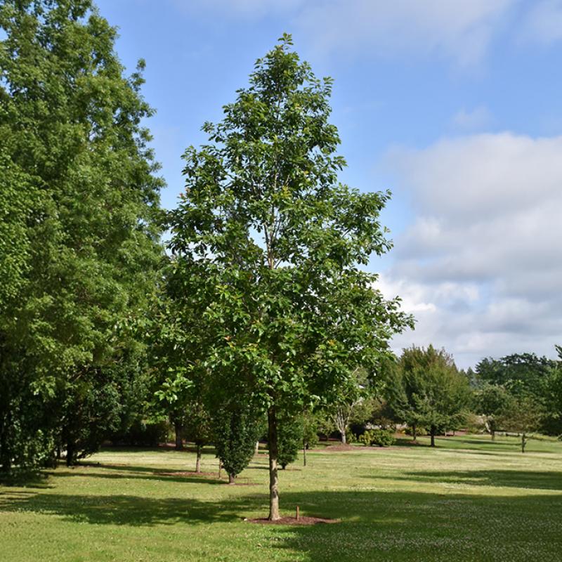 A superior selection of the native Swamp White Oak, valued for its strong, straight trunk, uniform branching, and resistance to leaf chlorosis and mildew. Glossy green leaves turn golden brown in fall. Excellent for shade, streetscapes, or large landscapes.