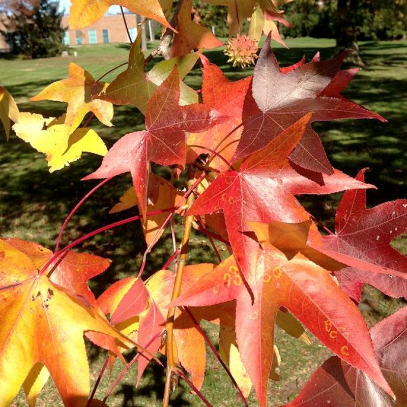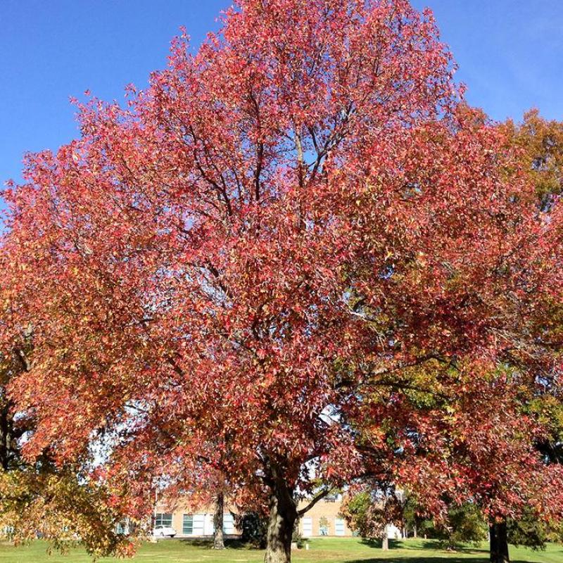 A large pyramidal, open crowned, low maintenance, deciduous tree with glossy, gold, yellow, and orange leaves. Produces inconspicuous yellow-green flowers that appear in April and May. Female flowers yield hard fruit that appear August through September, known as gum balls.