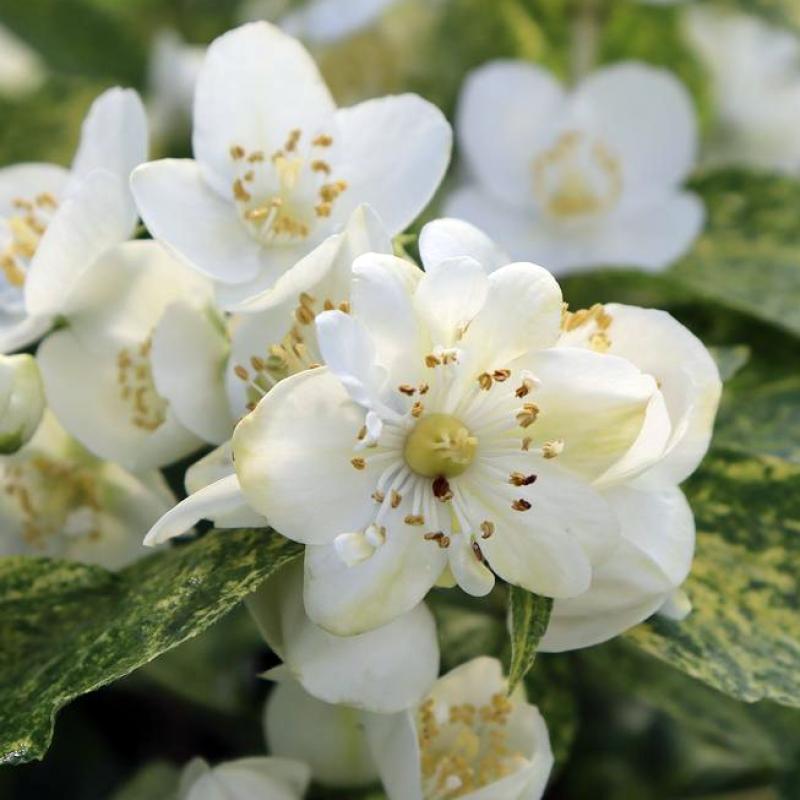 Conventional mock oranges look fabulous in bloom but don't have much to offer beyond that - until Illuminati Sparks mockorange (Philadelphus coronarius). Its lustrous green foliage is dotted with cheery yellow variegation for appeal that lasts early spring, summer, and beyond. Makes a very nice cut stem for foliage filler, as well as adds color and texture to the landscape. Fragrant white flowers in early summer.