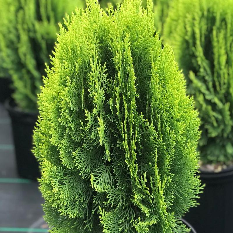A compact, upright arborvitae known for its bright lime green foliage that holds its color through the growing season. Naturally narrow and columnar, it fits perfectly in small gardens, entryways, or as an accent in mixed borders. Heat tolerant and low maintenance.