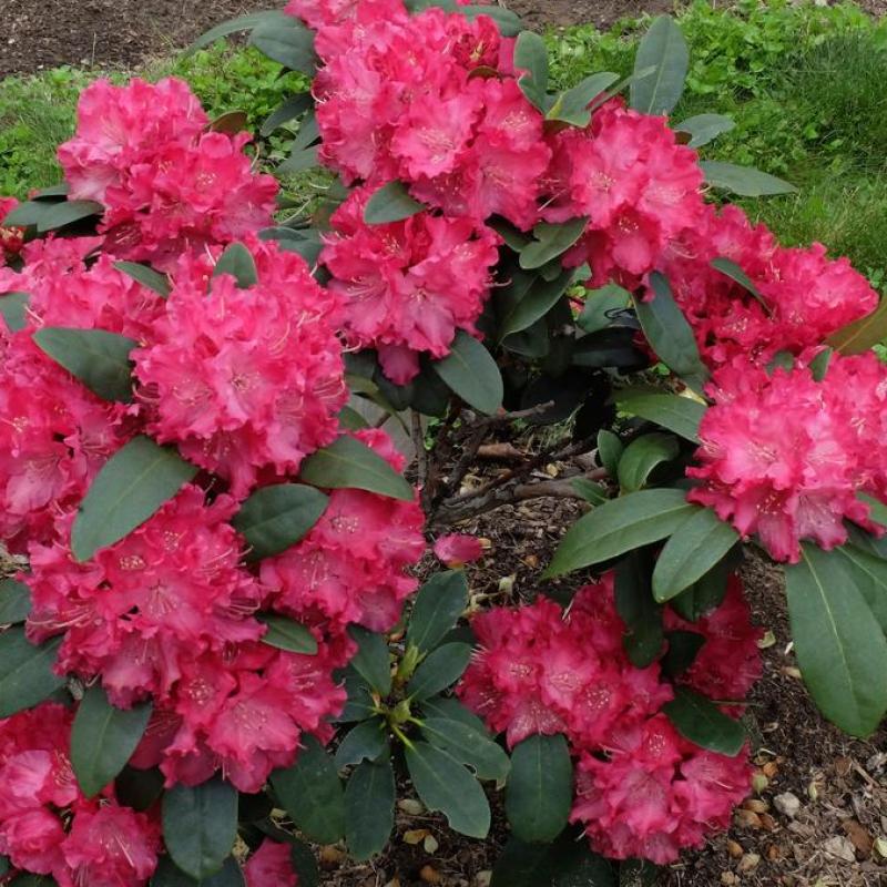 Dense, spreading, mound forming evergreen with spectacular, dark shiny foliage with buds that unfurls to create an explosion of bright red blooms. Colorful buds provide impressive winter interest.  Blooms in mid-May.  Enjoy this charming, old fashioned shrub that is an essential part of the spring landscape. Brightly colored flowers brighten shaded gardens or borders.