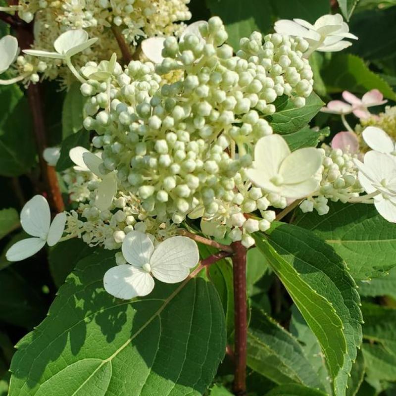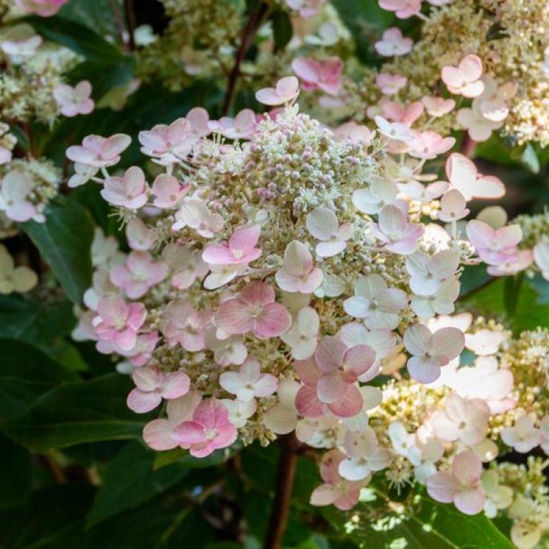 Compact panicle hydrangea with upright, torch-like clusters of white flowers that age to soft pink. Perfect for small gardens or borders with a long season of bloom and sturdy stems.