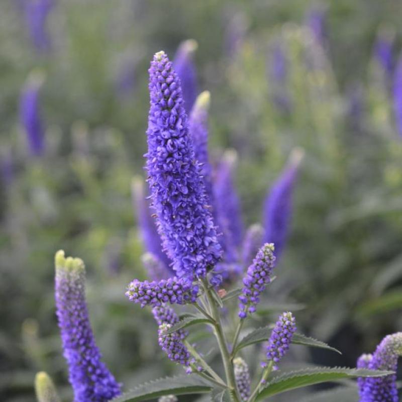 Dramatic deep purple-blue flower spikes appear from July to August on this compact, well-branched plant with clean, deep green foliage.