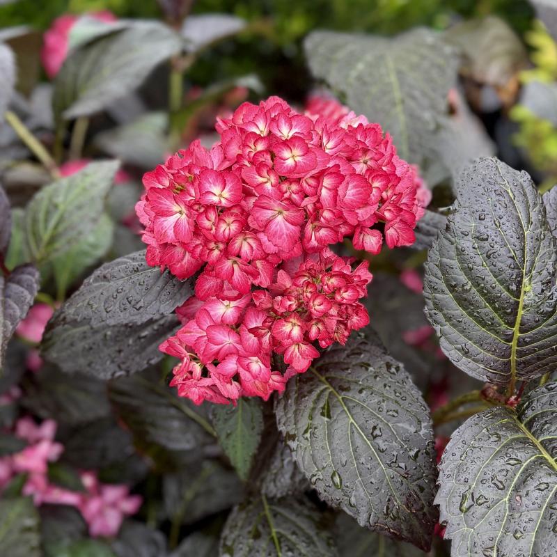 Eclipse is the first true dark leaf Hydrangea macrophylla! The dark foliage holds its color throughout the season, and pairs nicely with its dark purple or cranberry blossoms. This plant stands out well in a landscape or container.
