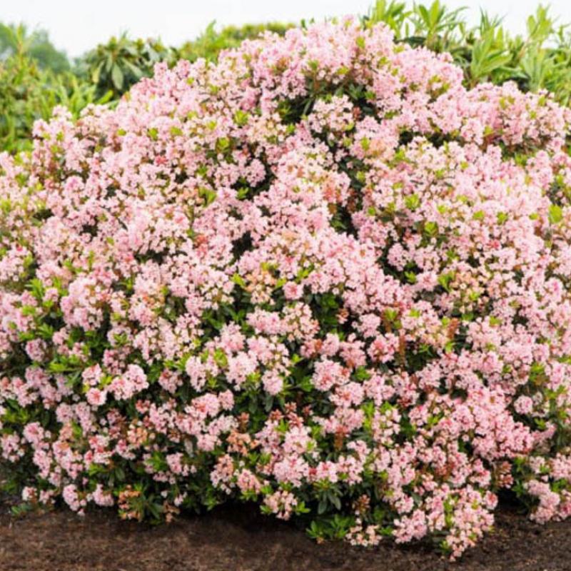 A compact, evergreen rhododendron bred to resemble boxwood, Bloombux forms a dense, naturally rounded mound of small, glossy green leaves. In late spring, the plant is covered with masses of soft pink flowers. Heat tolerant, disease resistant, and easy to maintain, it is an excellent alternative to boxwood for low hedges and formal plantings.