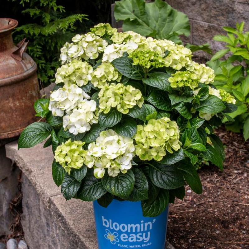 Lovely green blooms emerge in late spring before they age into a bright white color. The dark green foliage provides a beautiful backdrop for the contrasting lime green and white reblooming flowers throughout the spring and summer months. The compact, rounded habit is perfect for borders, container gardens, or mass plantings.
