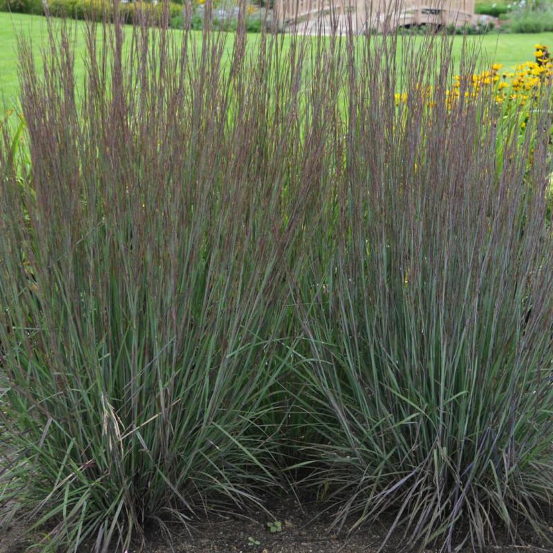 An upright, clump-forming native grass with blue-green summer foliage that transitions to deep red by late summer and intensifies to purple-red in fall. Delicate seed heads add texture and persist into winter, providing food for birds. 'Smoke Signal' is drought tolerant, easy to grow, and adds striking vertical color to borders, meadows, and naturalistic plantings.