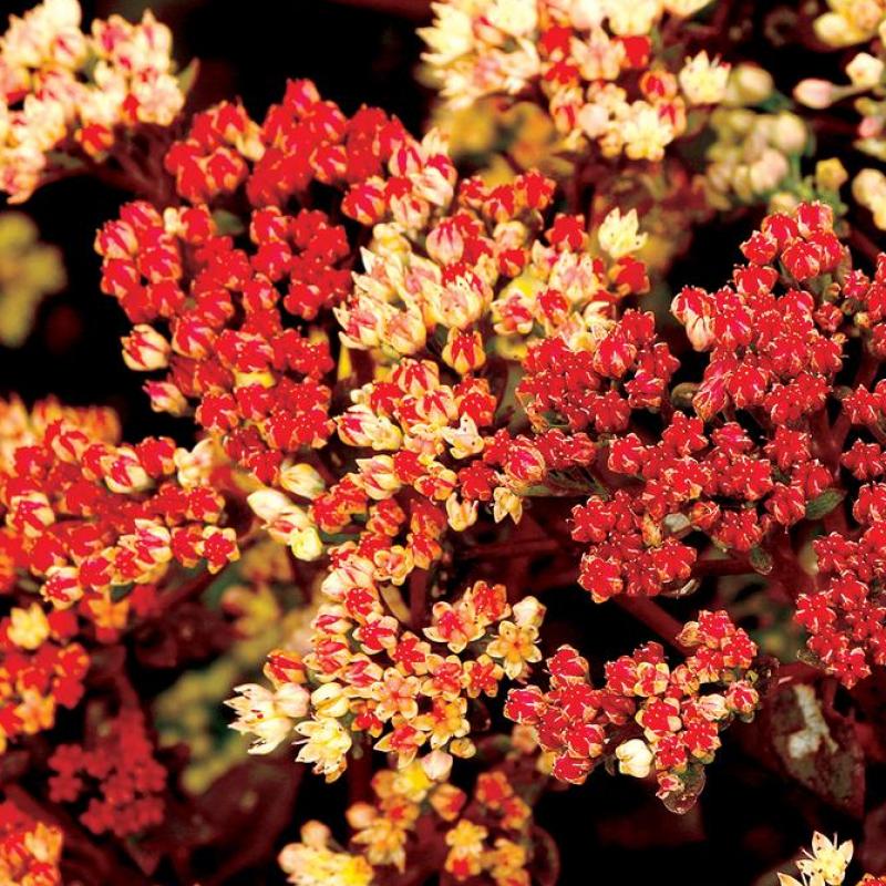 Foliage color and striking bloom come together to make this Sedum a garden force. Rich burgundy color graces this foliage as it emerges on upright, fleshy stems to form a dense mound in the garden. As the foliage ages, it takes on peach-colored tones, and each stem forms a disc of buds at its tip. These buds open in late summer revealing a combination of apricot and pink flowers that stand out with their unique color. Easy to grow and a pollinator magnet!