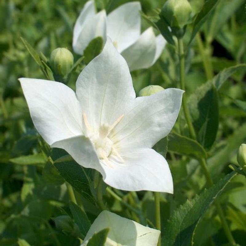 Compact and tidy, this balloon flower produces pure white star-shaped blooms from inflated buds. Great for edging, containers, and bright spots in mixed borders.