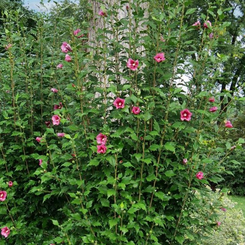 The same useful narrow habit, but with stunning new flowers! Each one of Red Pillar rose of Sharon’s plentiful blooms is a big red bullseye. Perfect for drawing in pollinators and visitors as a specimen or hedge.