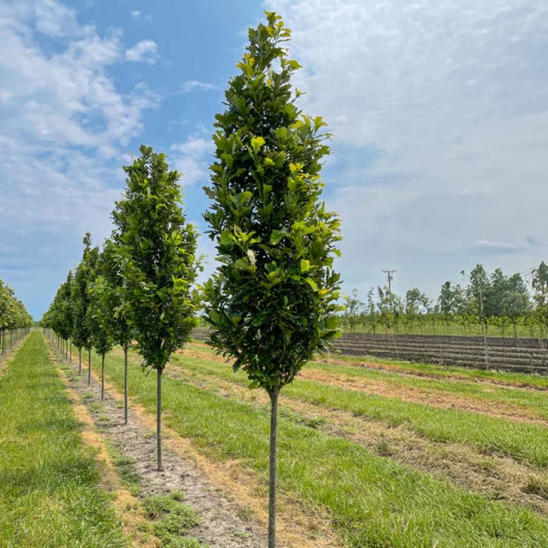 A narrow, upright hybrid oak prized for its columnar habit and glossy green leaves that turn rich russet in fall. Excellent for tight spaces, urban planting, or as a formal accent. A cross between Q. robur 'Fastigiata' and Q. bicolor, combining beauty with durability.