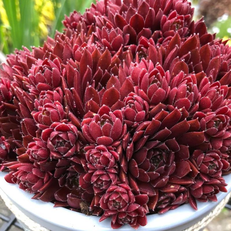 An eye-catching evergreen succulent forming dense clusters of rich coral-red to deep burgundy rosettes. Color intensifies in full sun and cool weather. Extremely drought tolerant and ideal for rock gardens, edging, containers, and troughs.