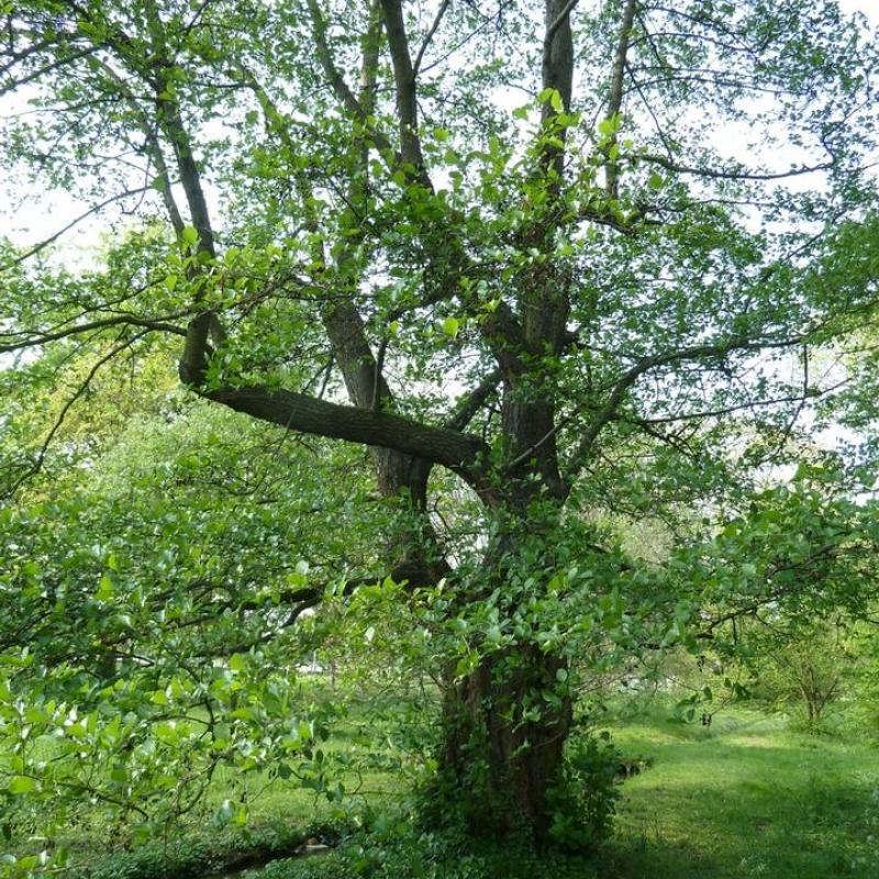 A small, multi-stemmed deciduous shrub or small tree native to eastern North America. It thrives in wetlands, along streams, and in moist lowlands. Leaves are dark green, finely serrated, and turn yellow in fall. It produces catkins in early spring before leaf-out, with woody cone-like fruits persisting through winter.
