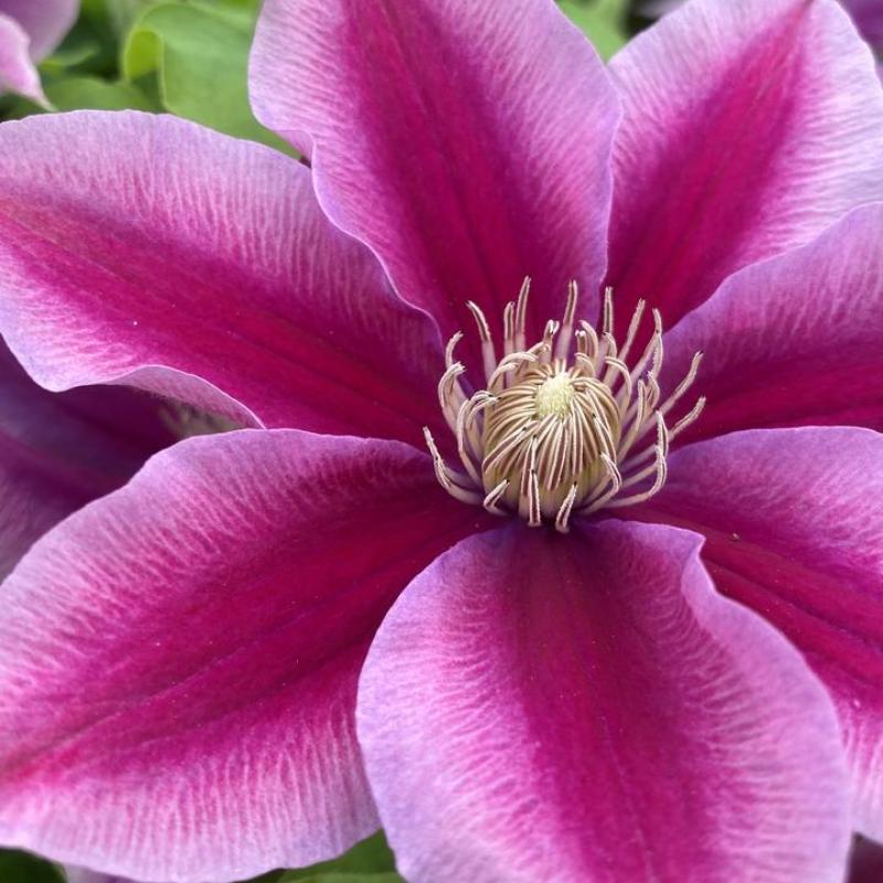 This clematis features lavender colored flowers with a wide magenta stripes. It is extremely free flowering with robust blooms that will hold throughout the season. It's compact habit makes it easy to care for, and perfect for containers or small garden spaces.