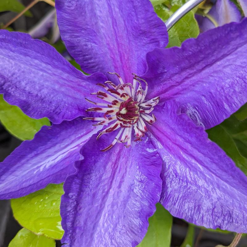 The compact bushy vines of 'Cherokee' feature 3-4" two-toned lightly ruffled flowers of dusky-pink with a deep magenta pink bar. It will bloom freely from spring to late summer. (Pruning Group 2)