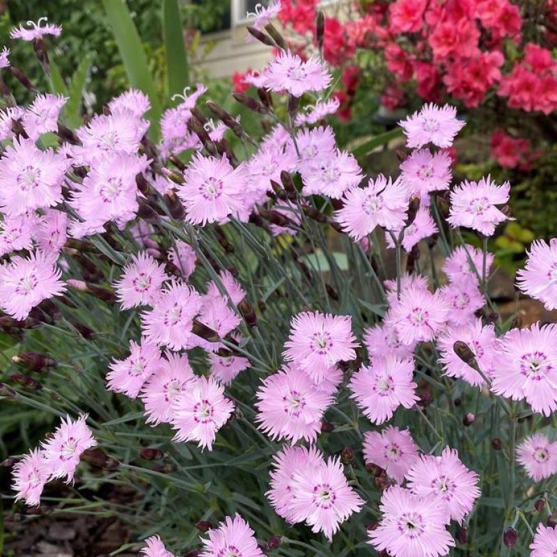 A charming, mat-forming perennial with silvery-blue foliage and a profusion of fragrant, fringed pink blooms in late spring to early summer. 'Bath's Pink' is drought-tolerant and thrives in sunny borders, rock gardens, and along pathways.