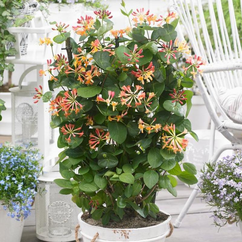 Spreading, twining stems wrap around fencing and trellis work rapidly creating a perfect trellised landscape feature. Tubular coral-apricot flowers cover the plant from late spring through summer adding scent & color from butterflies and hummingbirds. Vigorous growing and long blooming, this easy to grow vine is perfect for use along fencing or on a trellis. Later season berries attract birds while flowers attract butterflies and hummingbirds through the summer.