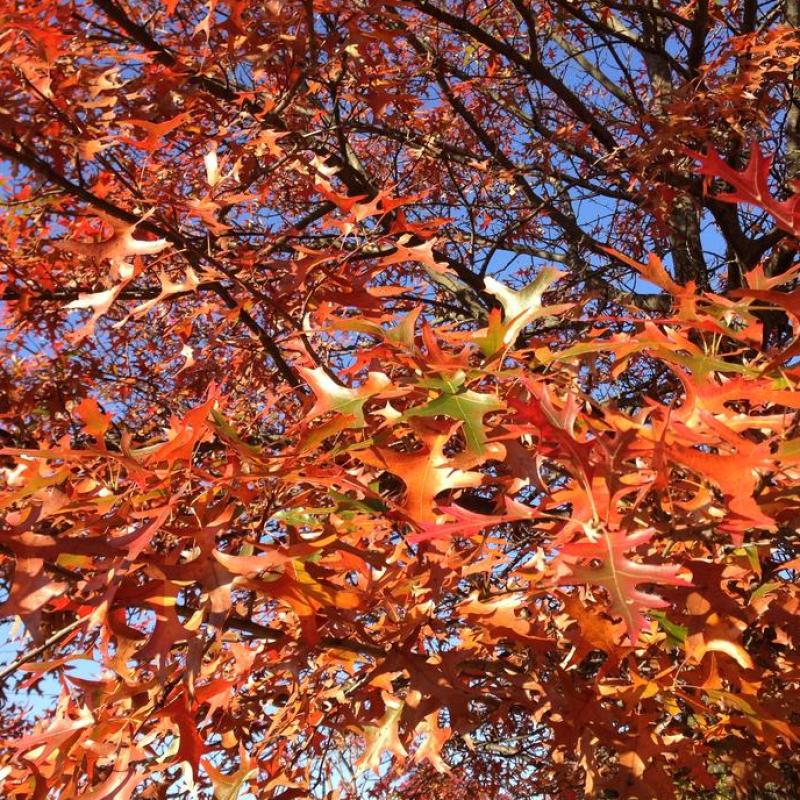 A stately native shade tree with a distinctive branching habit and finely lobed leaves that turn brilliant red to bronze in fall. Pin Oak is tolerant of wet soils and urban conditions, making it a popular choice for landscapes, parks, and streetscapes.