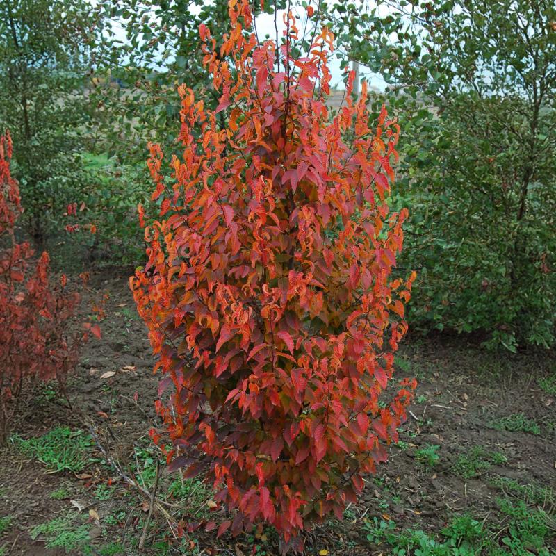 A striking columnar selection of American Hornbeam, 'Firespire' is valued for its upright, narrow habit and brilliant orange-red fall color. Its compact form makes it an excellent choice for smaller landscapes, hedges, or as a vertical accent. Smooth gray bark adds winter appeal.
