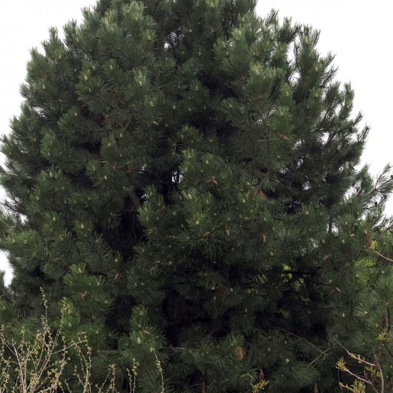 An excellent seaside or roadside plant, this densely pyramidal plant will become a broad, rounded tree when very mature. Long, dark, evergreen needles on stout branches and interesting reddish-brown blocky bark give way to tawny-yellow cones in winter.