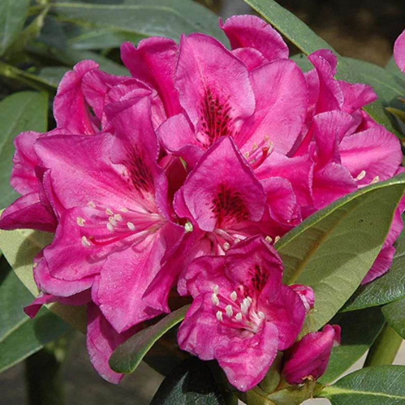 Deep violet-purple blooms with darker throats make 'Wojnar's Purple' a standout in any spring landscape. This hardy, compact rhododendron thrives in Maine gardens, offering bold color and evergreen structure that shines in both sun-dappled and shaded areas.