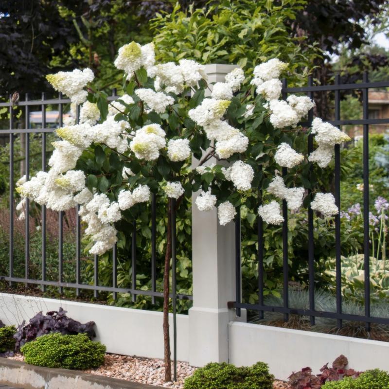 'Limelight Prime' is an improved version of 'Limelight' Hydrangea. It blooms earlier, is more compact, has stronger stems, and developes deeper pink and red tones as the flowers age. A great hedge choice!