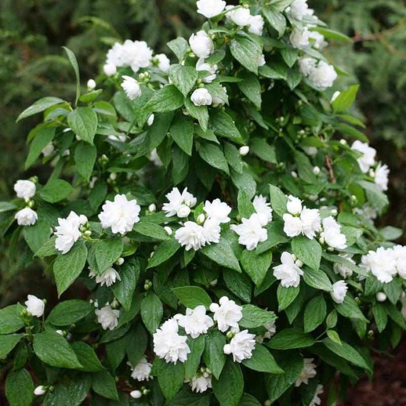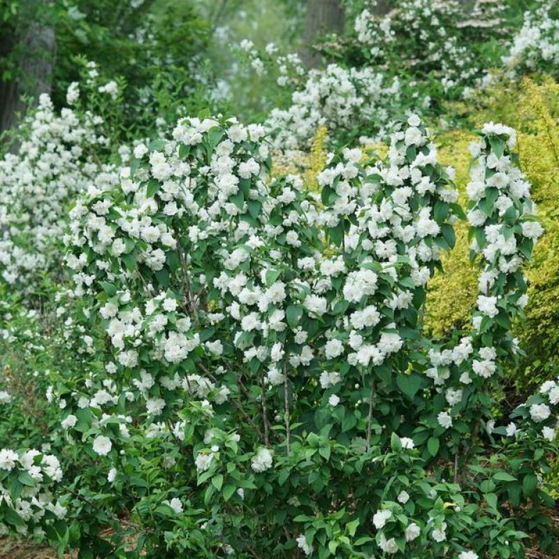 With a smaller, more compact habit, you can plant this spring favorite just about anywhere! Illuminati Spice mock orange has a 4’ x 4’ rounded form, fitting easily into the middle of the border and even making a handsome low hedge. Its massive double flowers line slightly arched, elegant stems. A high flower count produces a powerful citrusy perfume. It has the same healthy, thick foliage as the other members of the Illuminati series, making a handsome backdrop for plants with summer and fall interest.