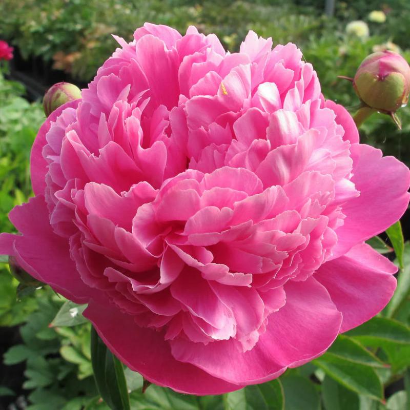 An exceptional cut-flower peony featuring enormous, fully double blooms in rich, vibrant pink. Strong stems hold the massive flowers upright, making this variety a standout in the garden as well as a favorite for fresh bouquets.