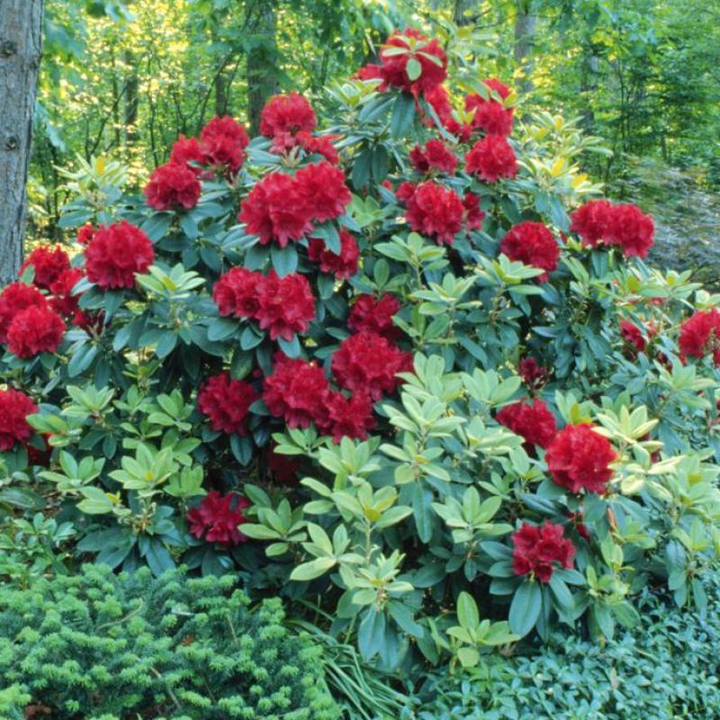 A cross between 'Vulcan' and 'Chocolate Soldier', 'Firestorm' is a small shrub with red, open, funnel-shaped flowers that have wavy edges. Each blossom is 3-3.5" wide that drastically stand out among the lime green leaves. Compact spreading form lends itself well to foundation use or in groupings to form a lower flowering hedge. Superb foliage, dependable late May bloom that's spectacularly showy.