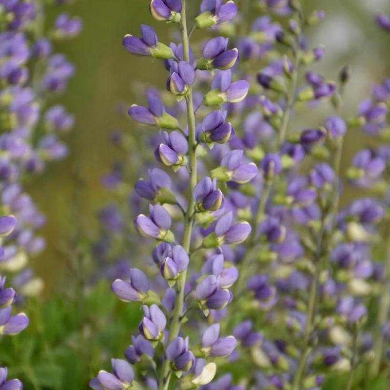 A vigorous and upright perennial with spires of soft periwinkle-blue pea-like flowers in late spring. Its attractive blue-green foliage and drought tolerance make it a standout in sunny borders or native plant gardens. Easy-care and long-lived.