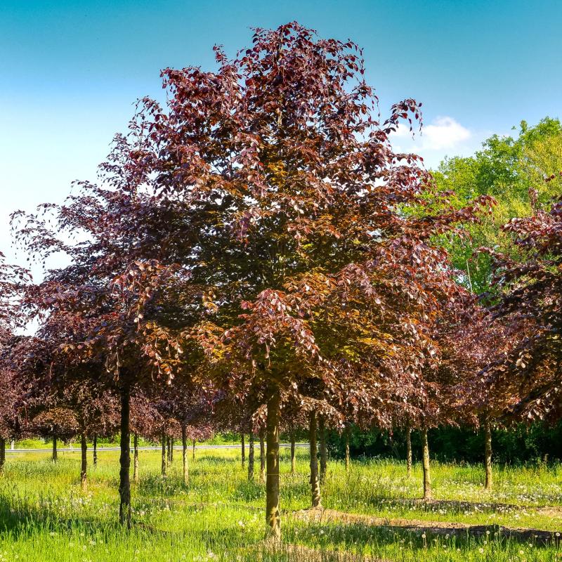 A stately, long-lived tree admired for its deep purple to copper-red foliage that holds color throughout the growing season. Smooth gray bark and a broad, rounded crown add year-round beauty. Excellent as a specimen tree, it provides dense shade and makes a dramatic landscape statement.
